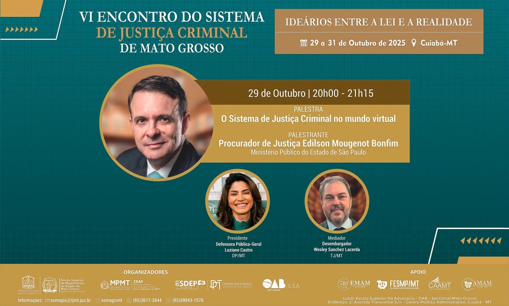 “O Sistema de Justiça Criminal no mundo virtual” será o tema da palestra inaugural do “VI Encontro do Sistema de Justiça Criminal do Estado de