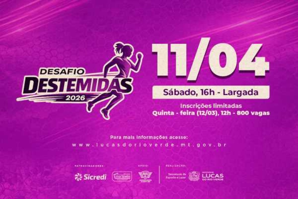 Com a oferta de 800 vagas destinadas às mulheres luverdenses, começam nesta quinta-feira (12) as inscrições para o Desafio das Destemidas 2026. A competição será