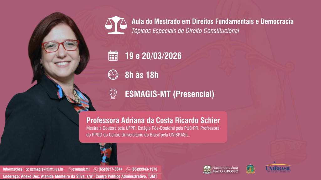 Nesta quinta e sexta-feira (19 e 20 de março) será realizado mais um módulo referente às atividades acadêmicas do programa de “Mestrado em Direitos Fundamentais