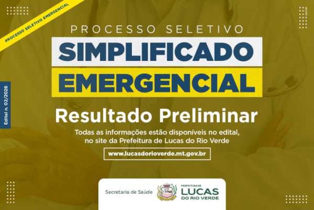 A Prefeitura de Lucas do Rio Verde divulgou na manhã desta segunda-feira (23), o resultado preliminar do Processo Seletivo Emergencial Simplificado, Edital n. 002/2026. Os