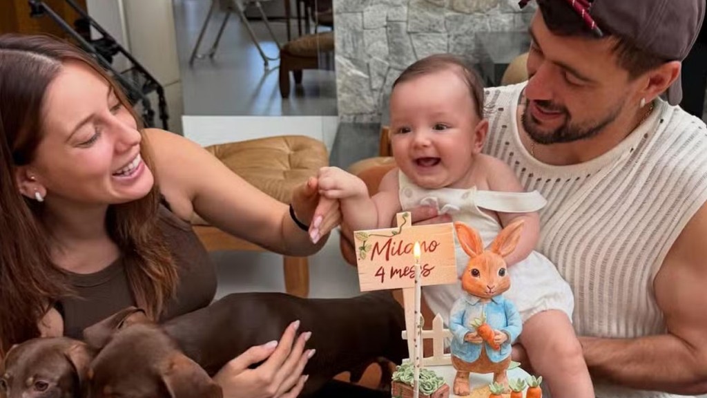 O jogador Giorgian de Arrascaeta, de 31 anos, celebrou nesta quarta-feira (8), os quatro meses de vida de seu primeiro filho, Milano, fruto do casamento