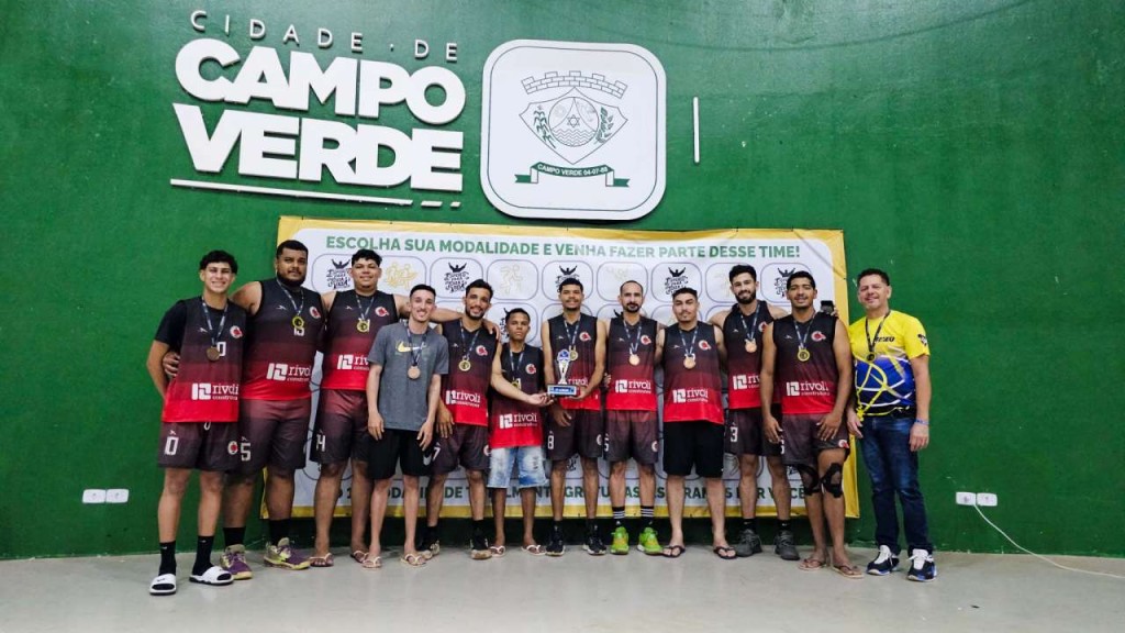 TIME ADULTO – Além do sub-14, o time masculino adulto também ficou em terceiro lugar no certame de Basquete disputado em Campo Verde. A equipe masculina treina três vezes na semana no ginásio Jorge Mussa.