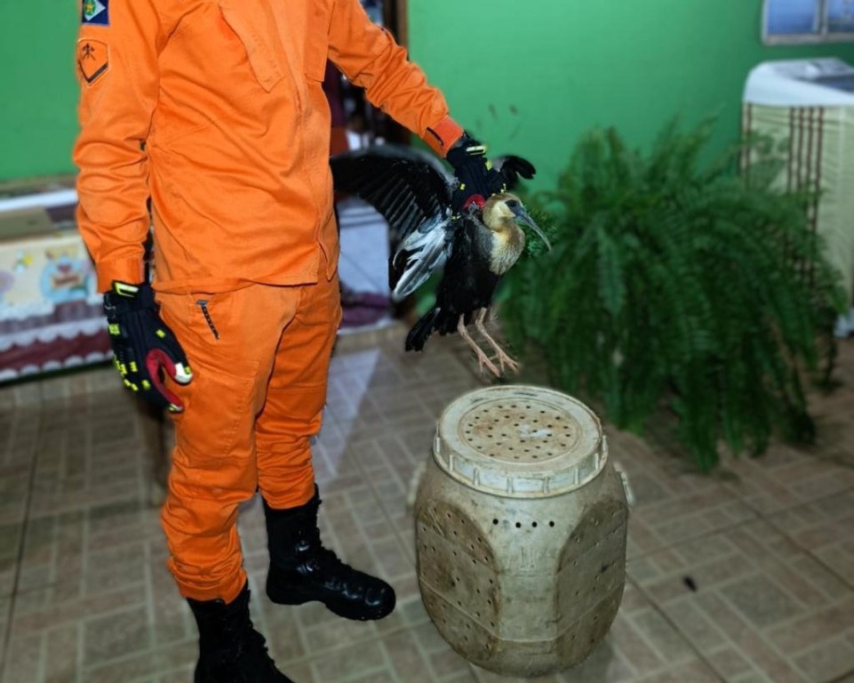 No local, os bombeiros militares constataram que se tratava de um filhote de curicaca, que não apresentava ferimentos aparentes. Após o resgate, o animal foi devolvido com segurança ao seu habitat natural.