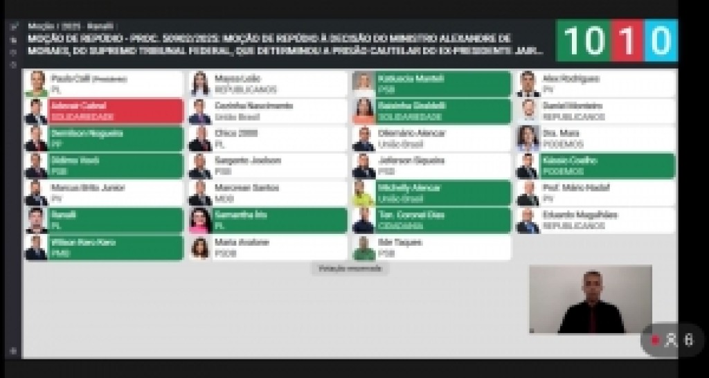 Votaram a favor pelo repúdio: Rafael Ranalli, Samantha Iris, Chico 2000, ambos do PL; Demilson Nogueira(PP); Katiuscia Mantelli e Dídimo Vovô, ambos do PSB; Wilson Kero Kero (PMB); Marcrean Santos (MDB); Eduardo Magalhães (Republicanos); Baixinha Giraldelli (SD), Michelly Alencar (União); Tenente-coronel Dias (Cidadania) e Kassio Coelho (Podemos).