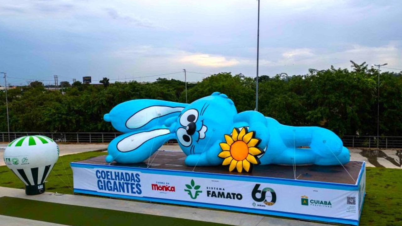 Cuiabá completa 306 anos nesta terça-feira (8) e ganhou um presente especial da Federação da Agricultura e Pecuária de Mato Grosso (Famato): a exposição Coelhadas Gigantes, em parceria com a Prefeitura e os Estúdios Mauricio de Sousa (MSP). A principal atração, o icônico “Sansão Gigante” — o coelho azul inseparável da personagem Mônica — já está em exibição no Museu do Rio e Aquário Municipal e segue aberta ao público até o dia 22 de abril.