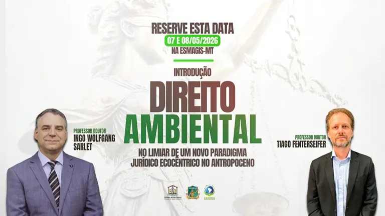 O Centro de Estudos Integrados em Meio Ambiente (Cesima), juntamente com a Escola Superior da Magistratura de Mato Grosso (Esmagis-MT), ofertará, em 7 e 8 de maio, o curso ‘Introdução ao Direito Ambiental – no Limiar de um Novo Paradigma Jurídico Ecocêntrico no Antropoceno’ para magistrados. A iniciativa, que integra o eixo temático “Meio Ambiente”, reforça o compromisso institucional com a formação continuada em temas de alta complexidade e crescente judicialização.