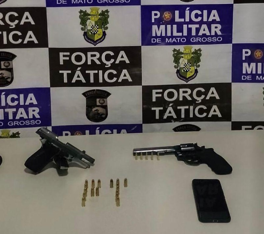 Policiais militares da Força Tática do 4º Comando Regional prenderam um homem, de 37 anos, por porte ilegal de arma de fogo, na noite desta quinta-feira (21.8), em Rondonópolis. Com o suspeito, foram apreendidas duas armas de fogo e munições.