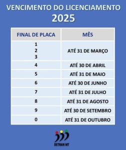 Confira abaixo as demais datas de vencimento do Licenciamento 2025: