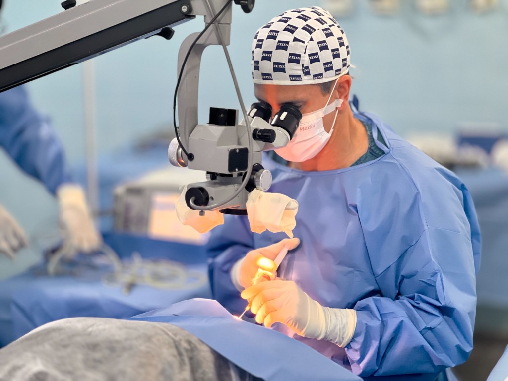 “Foram avaliados os sinais vitais, feita a medição da lente intraocular, a verificação da acuidade visual e a análise do tipo e formato da catarata.”