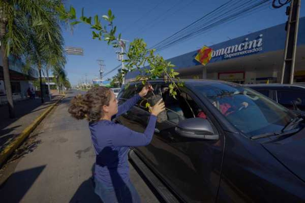 Com a participação dos servidores da Secretaria de Agricultura e Meio Ambiente, cerca de 300 mudas de plantas frutíferas e de sombra foram doadas aos luverdenses que passavam pela Avenida Mato Grosso, esquina com a Avenida Brasil. O Pit Stop foi na manhã desta terça-feira (03).