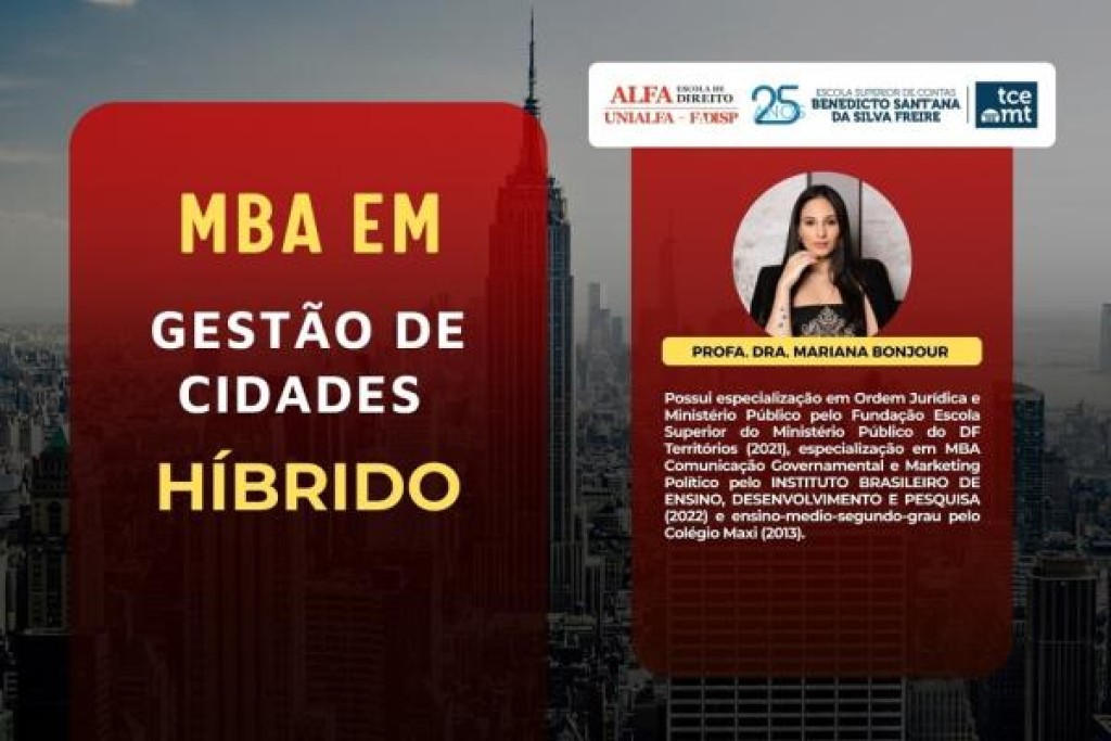 O MBA em Gestão de Cidades do Tribunal de Contas de Mato Grosso (TCE-MT) chega ao seu 16º módulo nesta sexta-feira (26), com o tema “Comunicação Governamental e Marketing Político”. A aula será ministrada pela professora Mariana Bonjour, das 8h30 às 13h30, no auditório da Escola Superior de Contas, com transmissão ao vivo pelo Canal do TCE-MT no YouTube e pela TV Contas (Canal 30.2).
