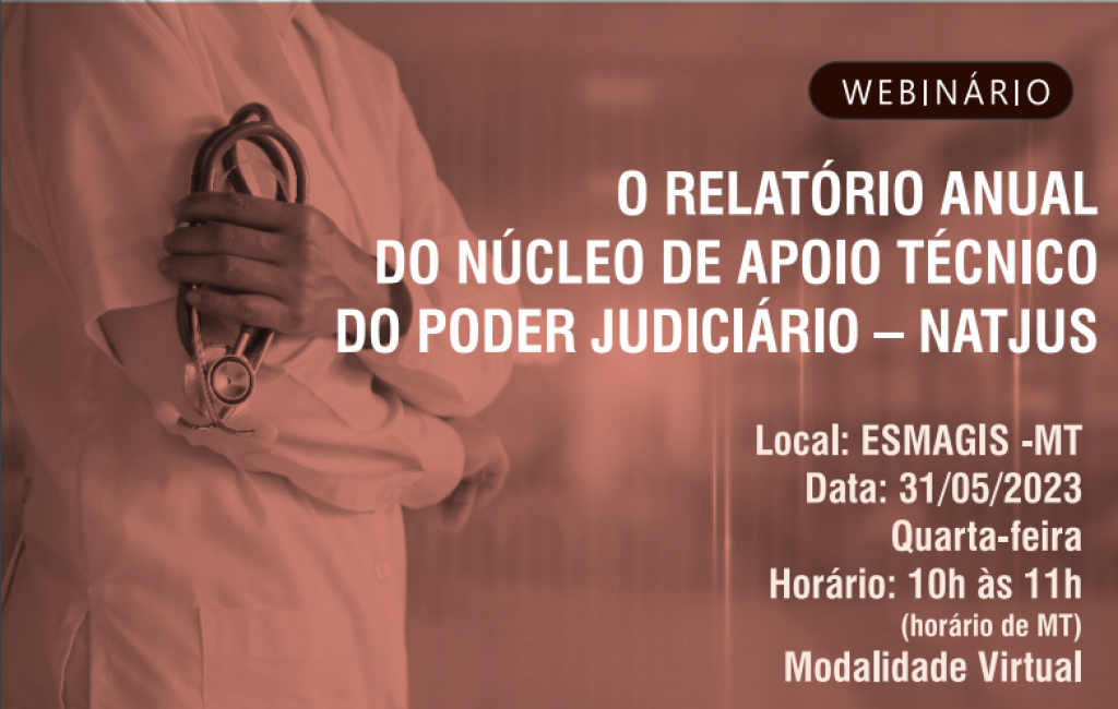 O Comitê Estadual de Saúde do Poder Judiciário de Mato Grosso e a Escola Superior da Magistratura (Esmagis-MT) realizam na próxima quarta-feira (31 de maio), das 10h às 11h, o webinário “O relatório anual do Núcleo de Apoio Técnico do Poder Judiciário – Natjus”. O evento será ofertado de maneira virtual. A abertura será feita pela desembargadora Helena Maria Bezerra Ramos, presidente do Comitê de Saúde e diretora-geral da Esmagis-MT. Na sequência, será realizada palestra com o juiz Gerardo Humberto Alves da Silva Junior e com a coordenadora administrativa do Natjus, a fisioterapeuta Norma Carolina Knaul Albuquerque Siqueira. Após as palestras será realizado um Fórum para análise, perguntas e discussão dos temas propostos.