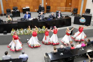 A sessão foi conduzida em clima de celebração, com apresentações culturais do grupo de siriri Pé no Chão e da personagem Comadre Sebastiana, que animaram o público. A oração de abertura foi realizada pelo profeta Levi.