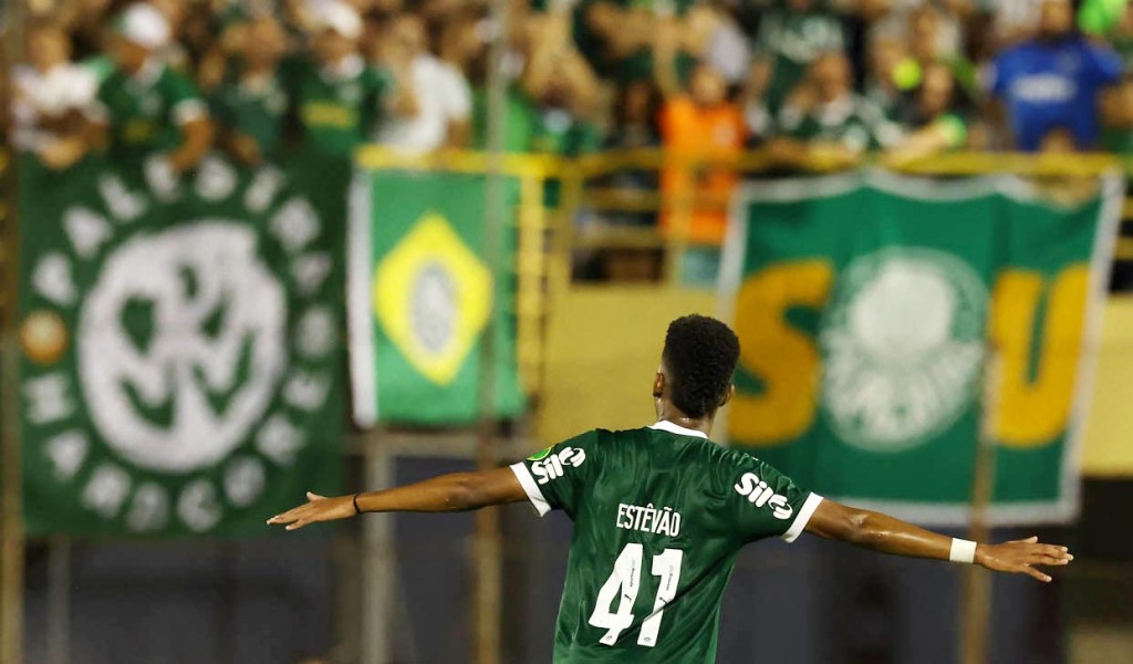 Gols: Estêvão, aos 16 e 46 minutos do 1°T e Flaco López, aos 12 minutos do 2°T (Palmeiras)