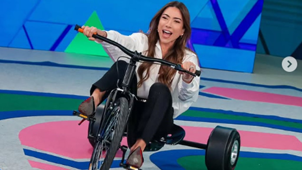 A apresentadora Patrícia Abravanel, arrancou gargalhadas da plateia de seu programa ao surgir andando de triciclo durante a programação. Ela postou um vídeo do momento de diversão nas redes sociais, neste domingo (21).