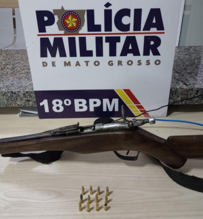 Um homem foi preso em flagrante na noite desta terça-feira (29.4), por ameaça e porte ilegal de arma de fogo, no município do Vale de São Domingos (433 km de Cuiabá). Policiais militares do 1º Pelotão apreenderam uma espingarda artesanal com 12 munições.