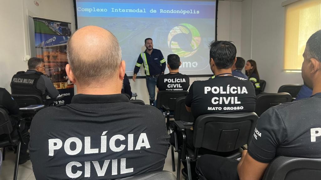 A Polícia Civil participou de um workshop promovido pela empresa Rumo logística, em parceria com diversas forças de segurança, como a Polícia Federal, Polícia Militar, Polícia Rodoviária Federal, Politec, Abin, além de representantes de empresas privadas ligadas ao setor de logística no agronegócio. O evento foi realizado nessa segunda-feira (9.6), em Rondonópolis, e teve como tema central “Identificando Fraudes em Soja e Farelo”.