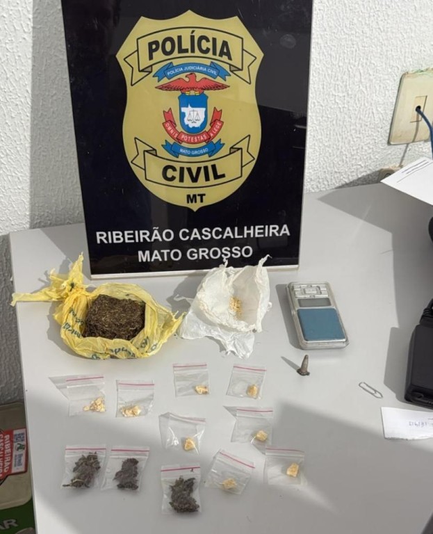 No imóvel, os policiais civis apreenderam várias porções de crack e maconha, embaladas e prontas para a venda, além de uma balança de precisão e dinheiro.