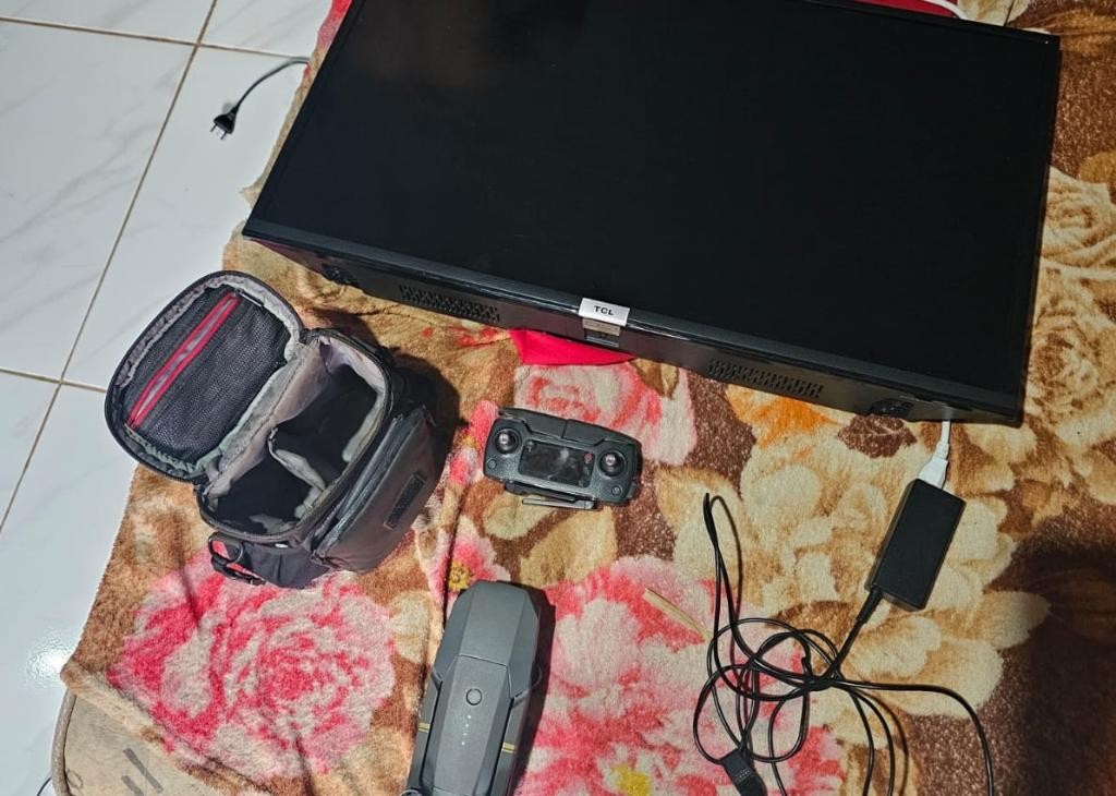 No endereço apurado, os policiais apreenderam diversos vários objetos de valor, como notebooks, rádios comunicadores, moedas estrangeiras, um drone, televisores, aparelhos celulares e um veículo automotor que teria sido utilizado para efetuarem o crime. Grande parte desses itens já foi formalmente reconhecida pela vítima do furto qualificado como sendo de sua propriedade.