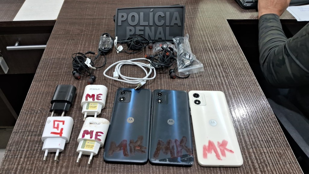 Os dois pacotes apreendidos continham cinco celulares modelos smartphones, quatro fones de ouvido, quatro carregadores e mais três cabos.