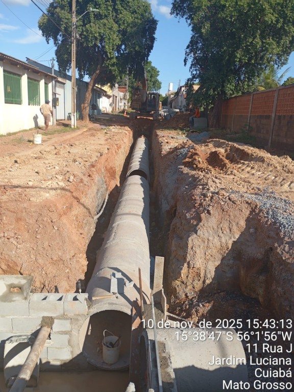 Equipes da Secretaria Municipal de Infraestrutura e Obras Públicas estão executando a implantação de drenagem em outras regiões de Cuiabá, nos bairros Jardim Presidente, próximo ao Trevo do Tijucal, CPA II, Santa Rosa e Altos da Serra, além da finalização do calçamento da Avenida Dr. Hélio Ribeiro, onde o processo de drenagem foi concluído.