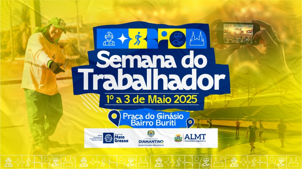A Prefeitura de Diamantino preparou uma programação especial para homenagear quem constroi todos os dias a rotina e o progresso da nossa cidade. Em parceria com a Secretaria de Estado de Cultura, Esporte e Lazer (SECEL-MT) e a Assembleia Legislativa de Mato Grosso, a Semana do Trabalhador 2025 será um momento de reconhecimento, valorização e celebração.