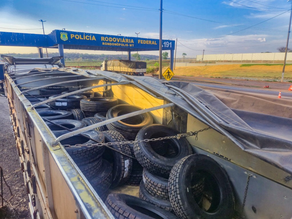 A fiscalização minuciosa foi realizada na Unidade Operacional da PRF, onde foi constatada uma grande quantidade de pneus de origem estrangeira, além de pneus fabricados no Brasil, mas produzidos exclusivamente para exportação, cuja comercialização em território nacional é proibida. O motorista declarou que o carregamento era de aproximadamente 130 pneus, os quais haviam sido retirados em um galpão em Ponta Porã, região de fronteira com o Paraguai.