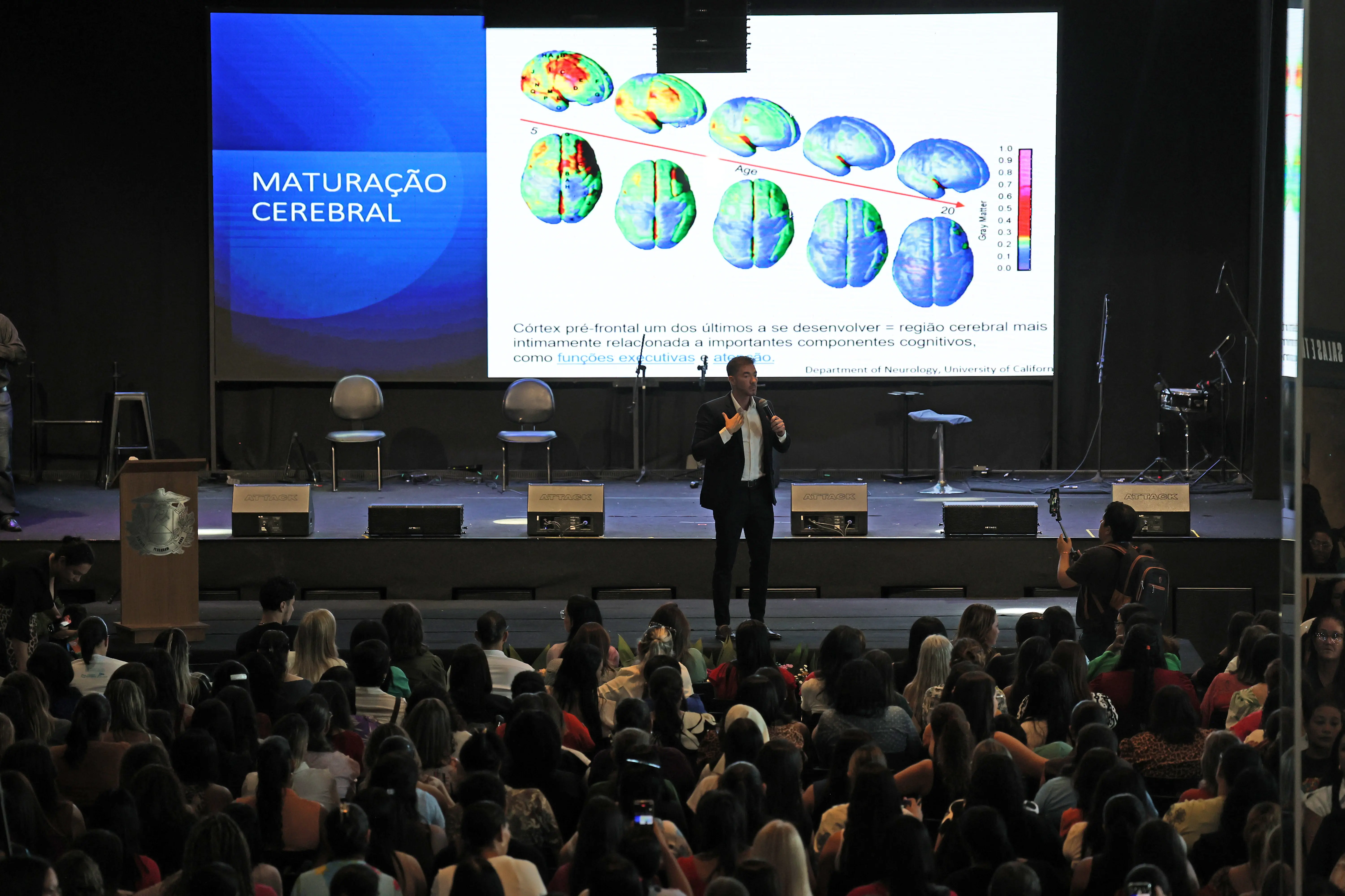 Na abertura, o neurologista pediátrico Thiago Gusmão apresentou os principais transtornos do neurodesenvolvimento no ambiente escolar, destacando caminhos possíveis para professores e cuidadores lidarem com diferentes perfis em sala de aula. A abordagem trouxe elementos práticos, mas também reforçou a necessidade de formação continuada e sensibilidade no trato com crianças neurodivergentes.