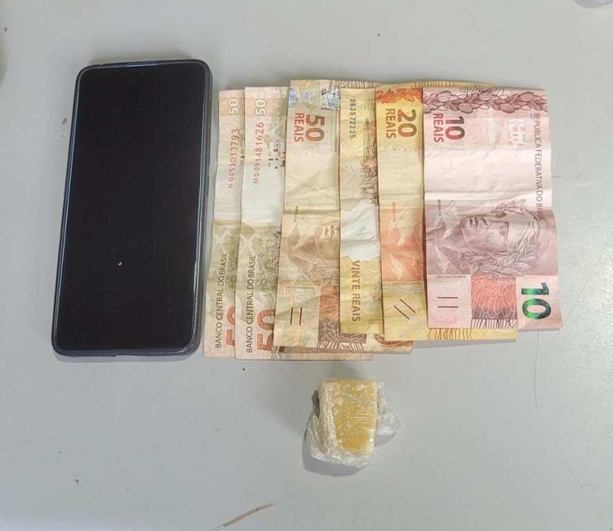 No imóvel, os policiais sentiram um forte odor de entorpecente, conseguindo localizar uma porção média de pasta base de cocaína, enrolada em uma fralda em um cesto de lixo. Em continuidade as buscas, os policiais acharam dinheiro trocado, característico da atividade de tráfico, em diversos pontos da casa.