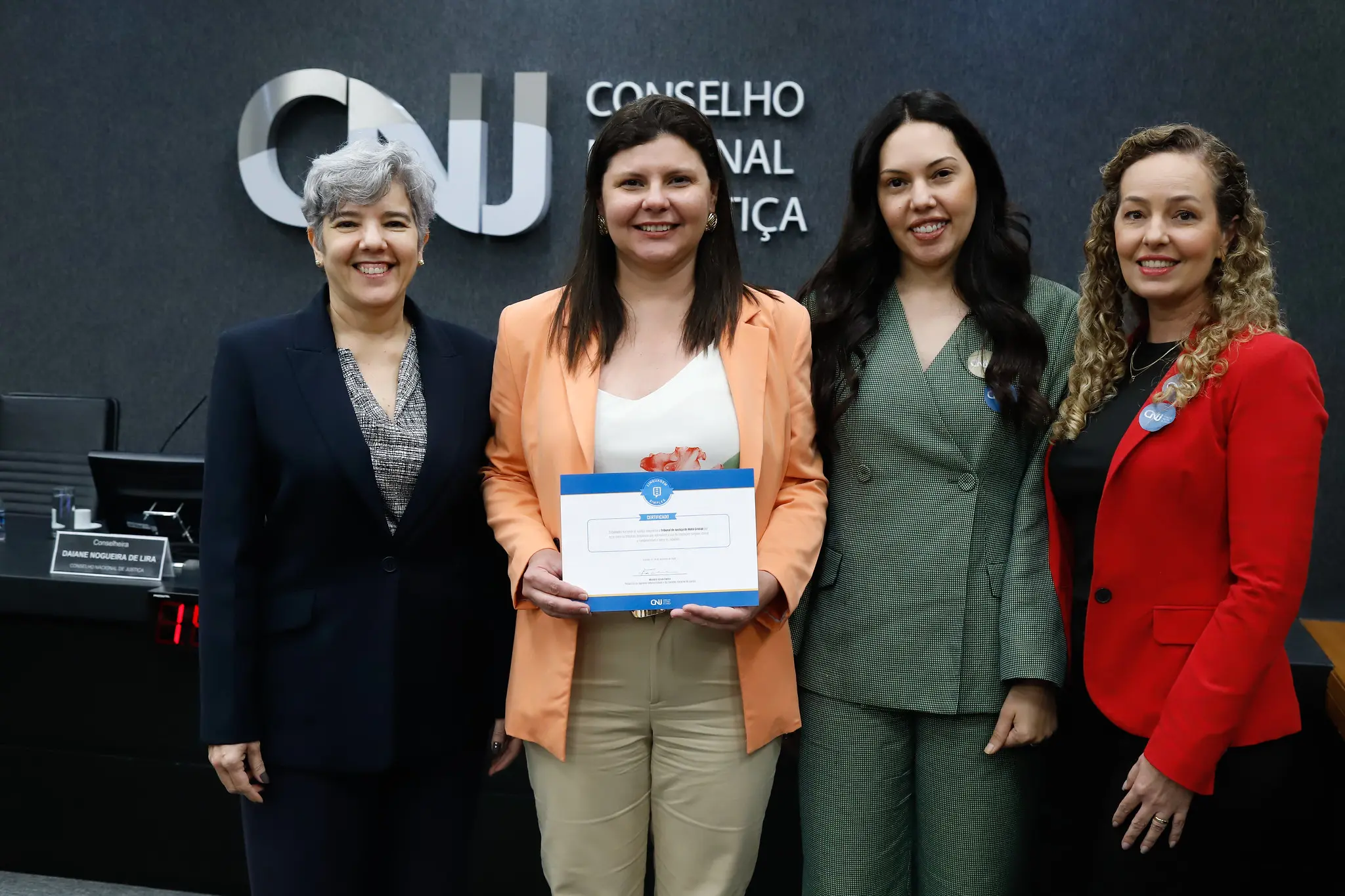 O Tribunal de Justiça de Mato Grosso (TJMT) recebeu na tarde desta terça-feira (16) o Selo Linguagem Simples, concedido pelo Conselho Nacional de Justiça (CNJ), em cerimônia realizada em Brasília. A juíza coordenadora do laboratório de inovação InovaJusMT, Joseane Quinto Antunes, representou o Tribunal e recebeu o certificado das mãos da conselheira Daiane Nogueira de Lira, responsável pela avaliação.