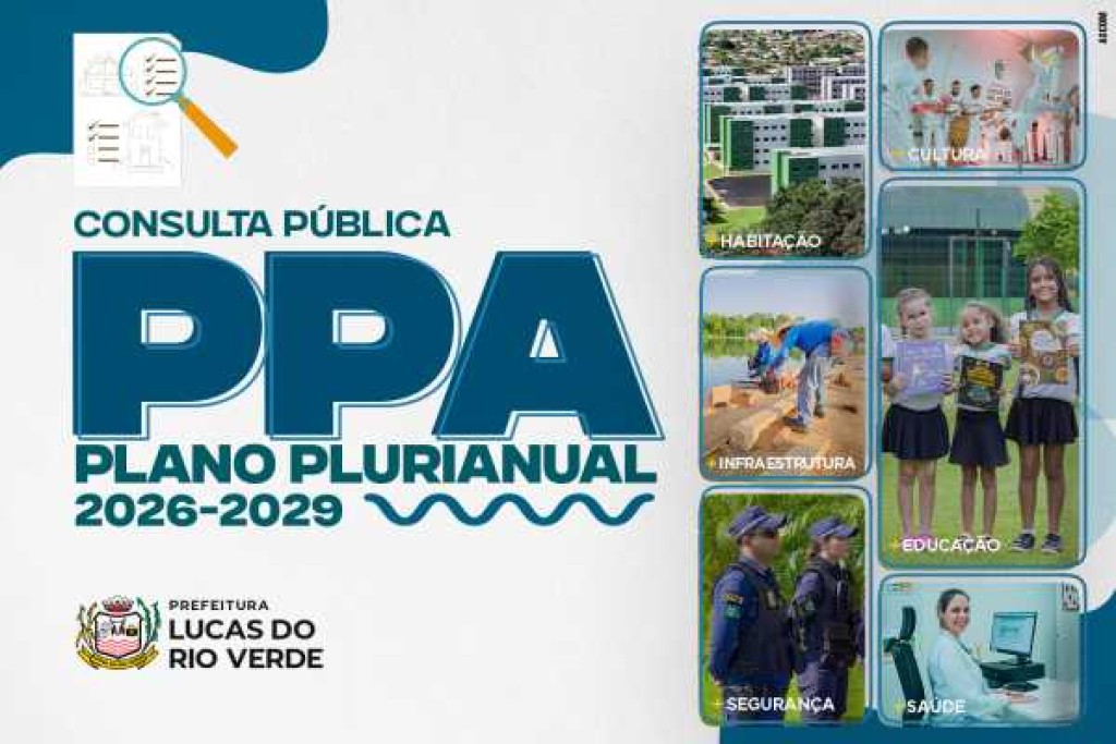 O PPA é o instrumento que vai orientar os investimentos públicos em Lucas do Rio Verde nos próximos quatro anos (2026 a 2029). As demandas apresentadas pela população podem se transformar em: Novas unidades de saúde e escolas; Melhorias na infraestrutura e pavimentação; Programas habitacionais; Projetos de segurança pública e investimentos em esporte e lazer.