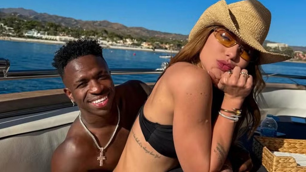 Virginia Fonseca, de 26 anos, se declarou ao namorado, Vini Jr., de 25, neste sábado (3). A influenciadora publicou fotos românticas ao lado do jogador e escreveu: “Sou feliz com você, te amo”, acompanhada de um emoji de coração.