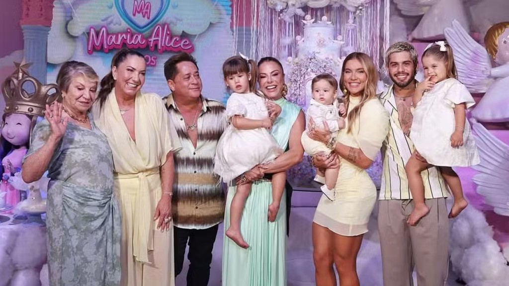 Nas imagens, ela aparece com a aniversariante e também com o ex-marido, Zé Felipe, e com os outros dois filhos do ex-casal, Maria Flor Fonseca e José Leonardo Fonseca.